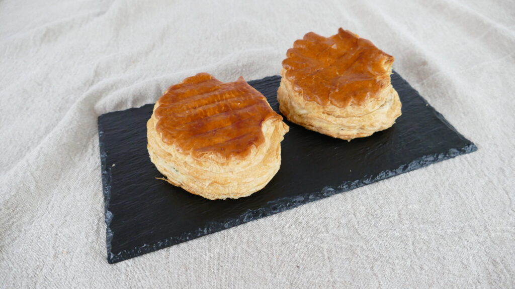 Le feuilleté Jambon béchamel, le feuilleté provençal, le feuilleté forestier et le feuilleté aux noix de Saint-Jacques et poisson à l’indienne.